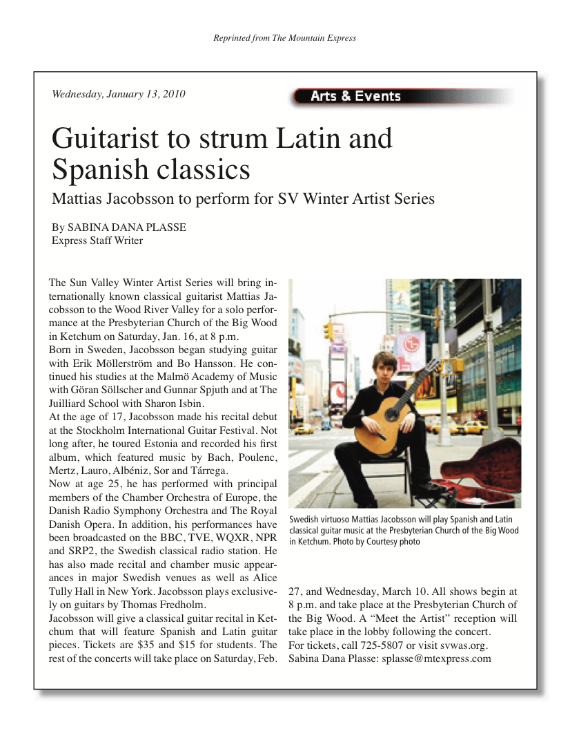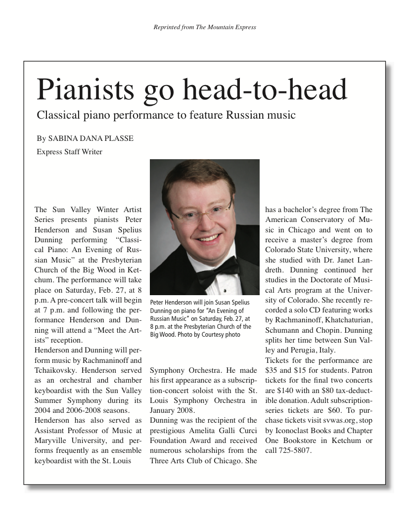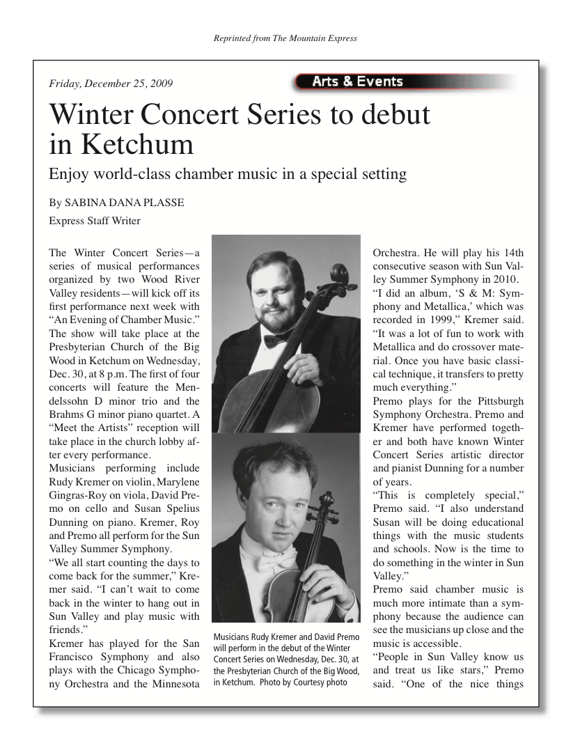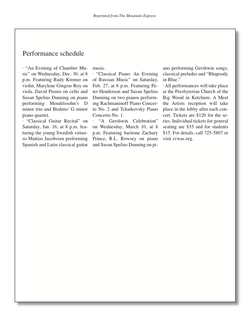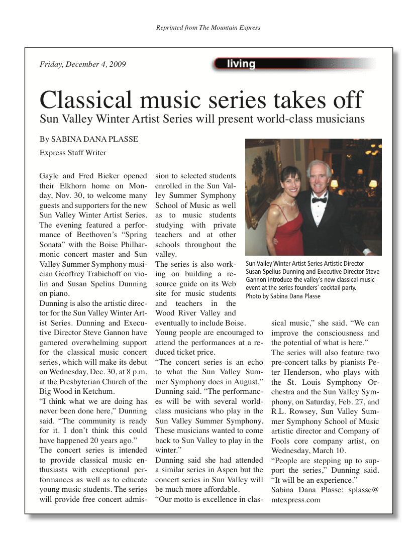 Sun Valley Artist Series info@svartistseries.org PO Box 1379 Sun Valley, ID 83353